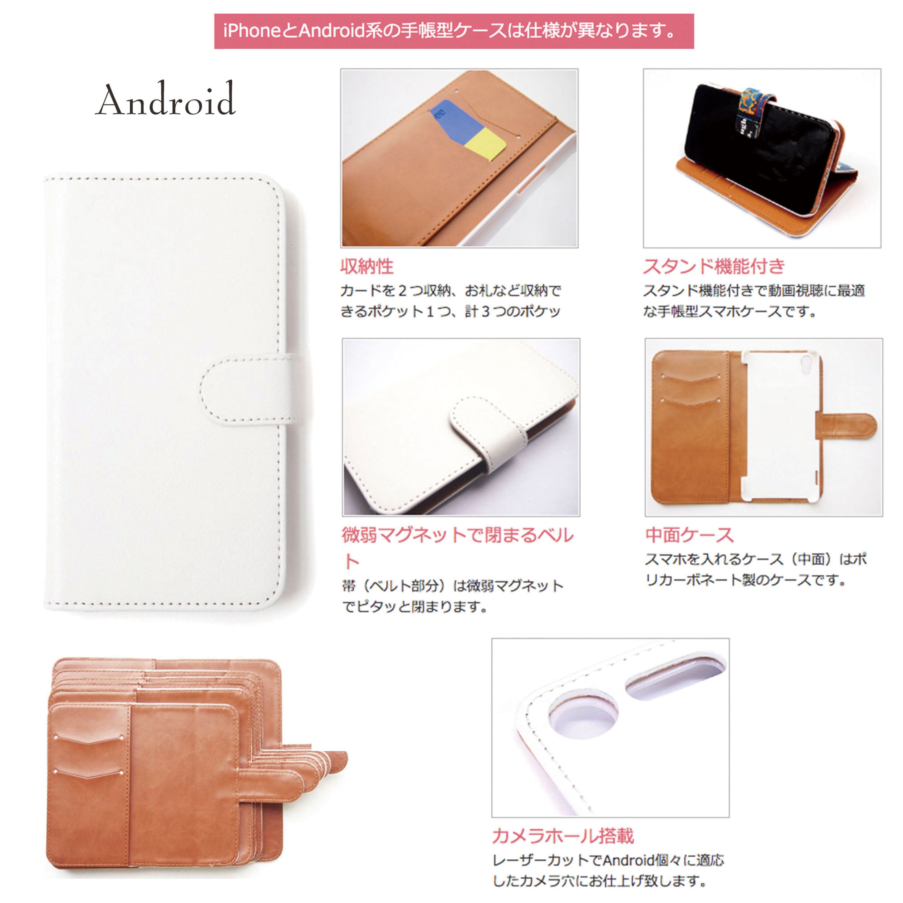 ※ iPhoneとAndroid系の手帳型ケースは仕様が異なります。