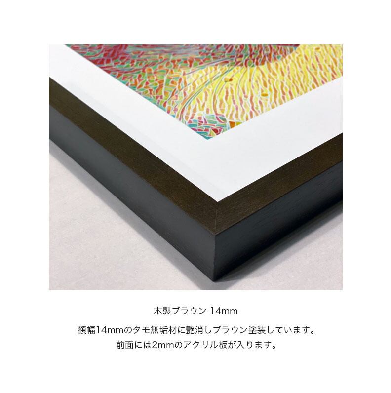 木製ブラウン 14mmの額入り、マット ST鉄 2mmになります。